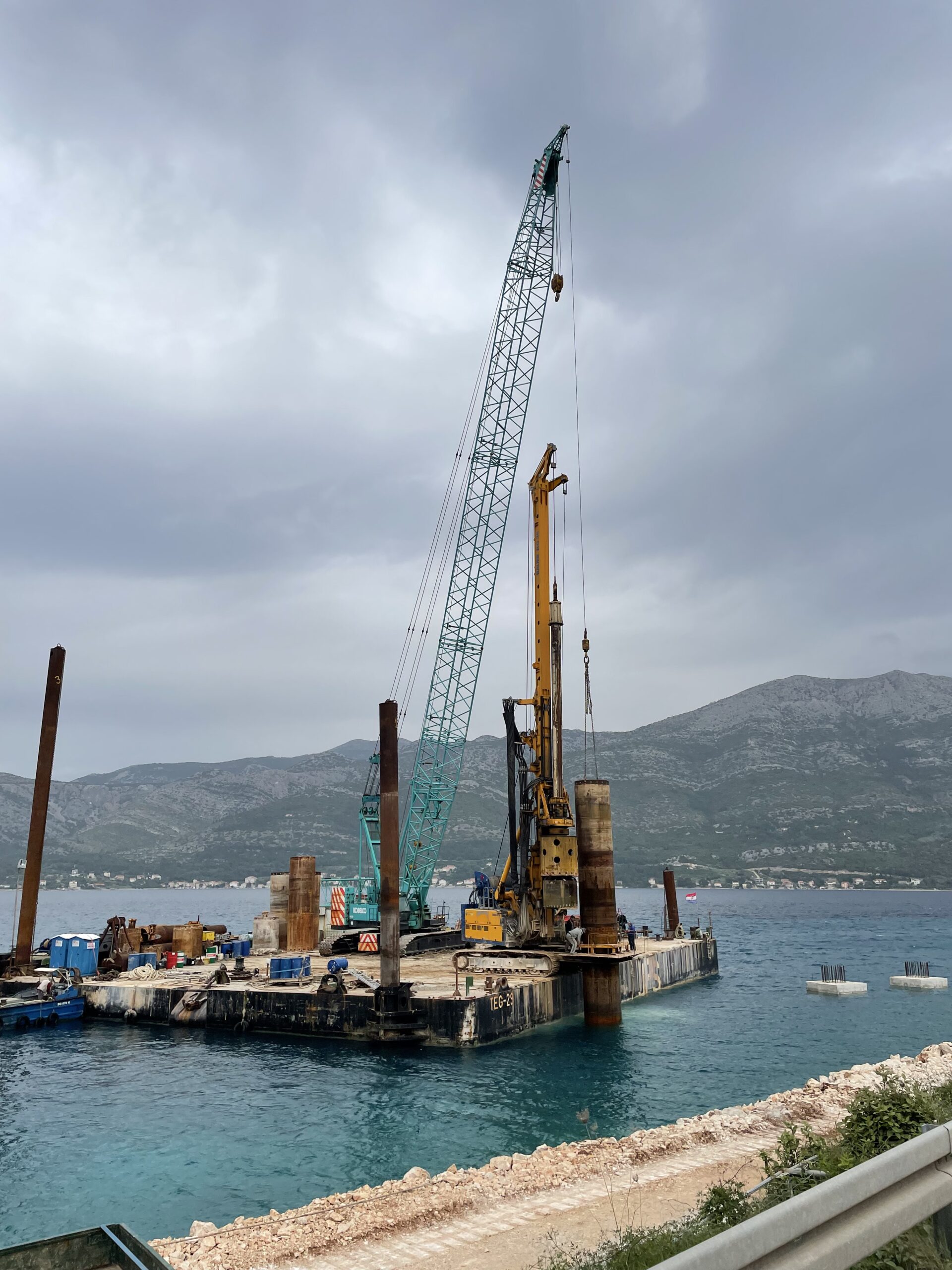 Nach den im vorherigen Blog erwähnten „Arbeiten“ an Bord haben wir am Nachmittag die Altstadt von Korčula besucht. Von unserer Bucht sind wir knapp drei Kilometer bis in die Stadt gelaufen. Dabei sind wir auch an der Baustelle für einen neuen Fähr- und Yachthafen für Korčula gleich hinter unserer Bucht in Banja vorbeigekommen. Beeindruckend! 😊