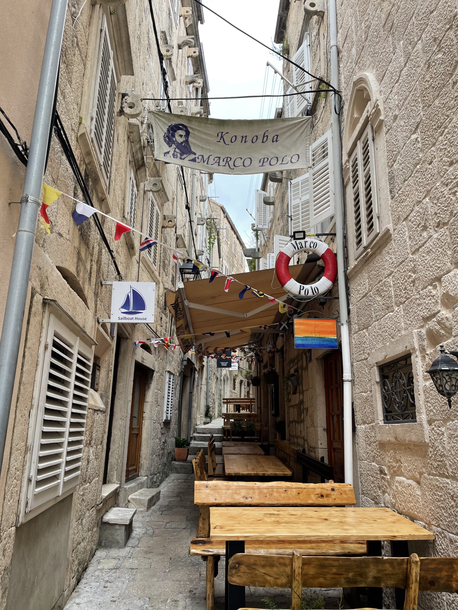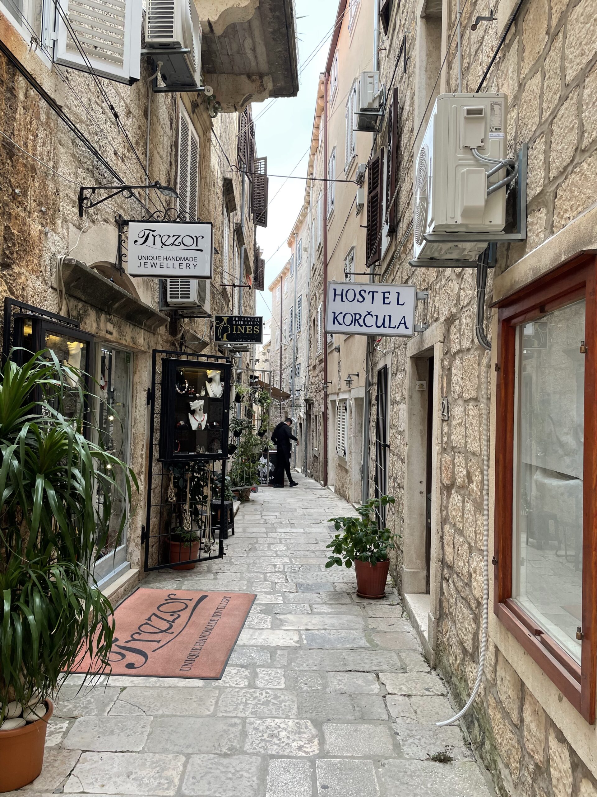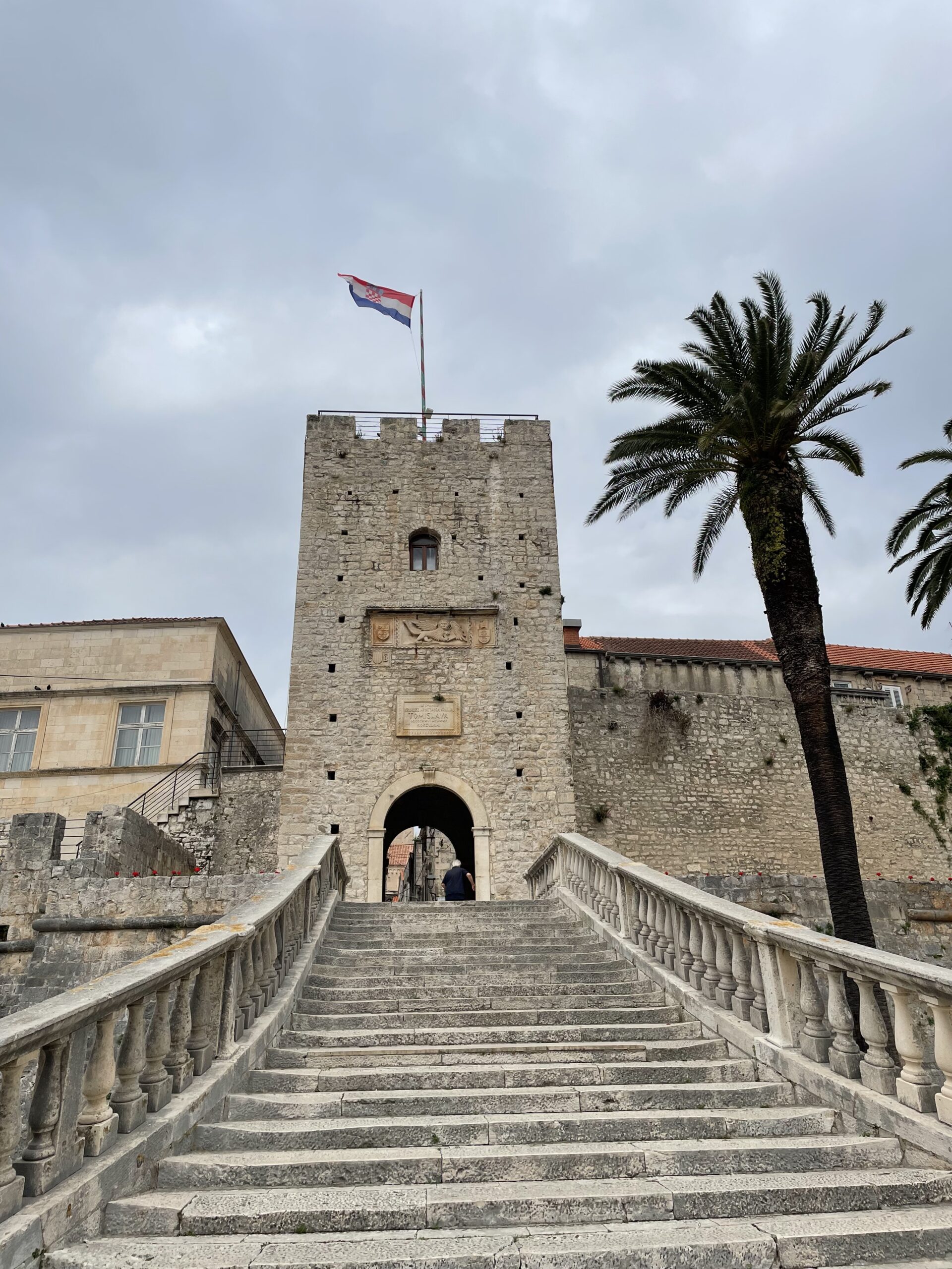 Schon auf dem Hinweg haben wir ein paar tolle Blicke auf die mittelalterliche Altstadt genießen dürfen. Dort angekommen war die Begeisterung nicht weniger groß. Die alten Häuser und kleinen Gassen sind super gepflegt und gut erhalten. Wie bereits an anderen Orten haben wir auch in Korčula noch deutlich die Vorsaison wahrgenommen. Viele Geschäfte und Gastronomiebetriebe waren noch geschlossen. Man begegnete sehr wenigen Touristen. Vielmehr waren Schulklassen wohl auf Klassenausflug im Stadtmuseum oder im Geburtshaus von Marco Polo unterwegs.