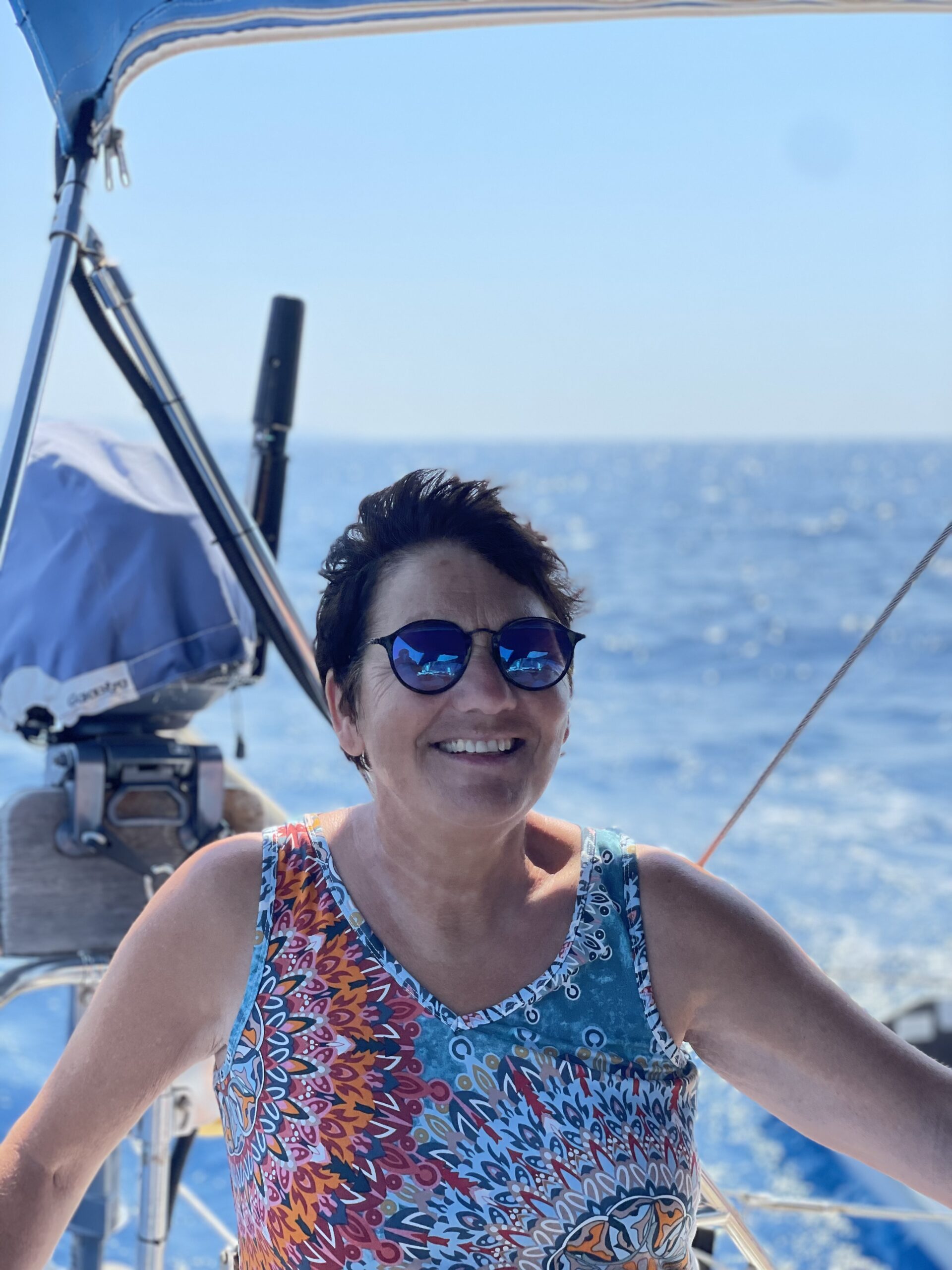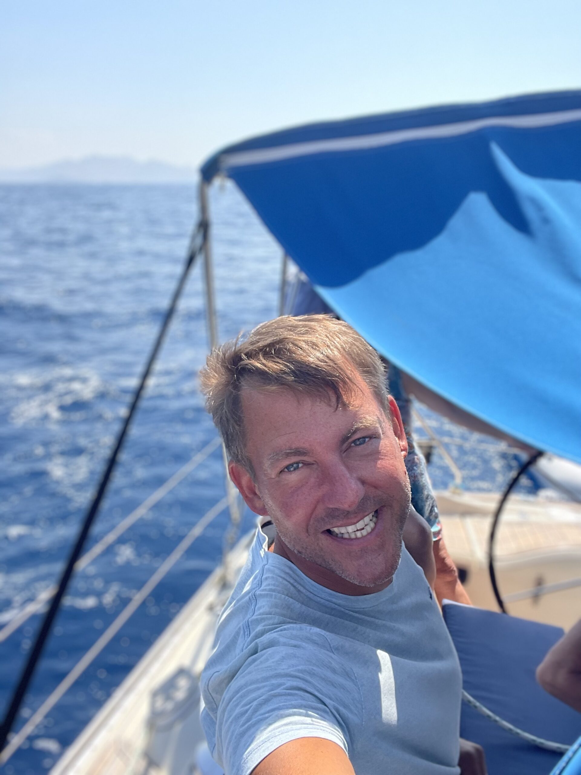 Rechtzeitig zurück in der Kos-Marina, hießen wir Sigrid und Wolfgang herzlich Willkommen an Bord unserer „el Rubio“. Für Beide war es das erste Mal auf einer Segelyacht, insbesondere auch darauf zu nächtigen. Nach einem schönen ersten Abend in Kos Stadt, legten wir am nächsten Morgen ab und segelten entspannt auf die kleine, nördlich von Kos gelegene Insel Pserimos. Hier ließen wir unseren Anker in herrlich türkisfarbenem Wasser über dem Sandgrund fallen und genossen ein erfrischendes Bad. 👙🩱🩳🩲
