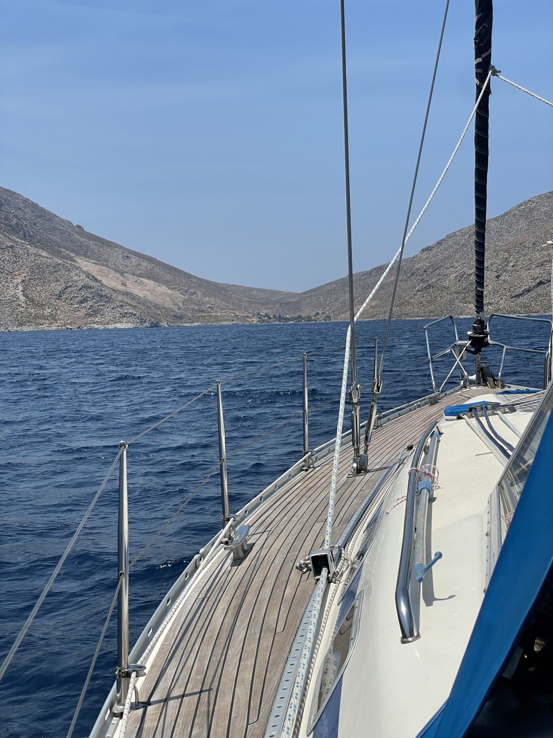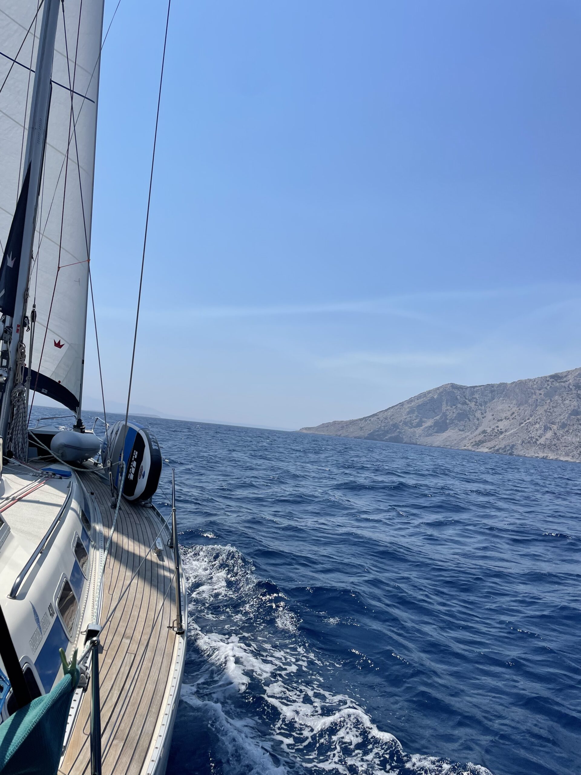 Da wir am nächsten Tag ohnehin erst ab 15:00 Uhr in die Kos-Marina einlaufen durften, hatten wir keinen Stress. So legten wir erst am späten Vormittag ab und konnten bei tollem Wind nochmal richtig gut auf der Nordseite von Kos Segeln. Unmittelbar vor der Marina gingen wir nochmal kurz vor Anker, um das Boot für die Einfahrt vorzubereiten. So mussten wieder alle Fender ausgebracht und die Festmacherleinen vorbereitet werden. Zwischenzeitlich wollte Wolfgang nochmal baden gehen und sprang in die Fluten. Durch den mittlerweile starken Wind und der damit verbundenen starken Oberflächenströmung hatte er alle Mühe, wieder zum Boot zurück zu schwimmen. Sicher wieder zurück an Bord gingen wir Anker auf und fuhren in die Kos-Marina ein. 👍