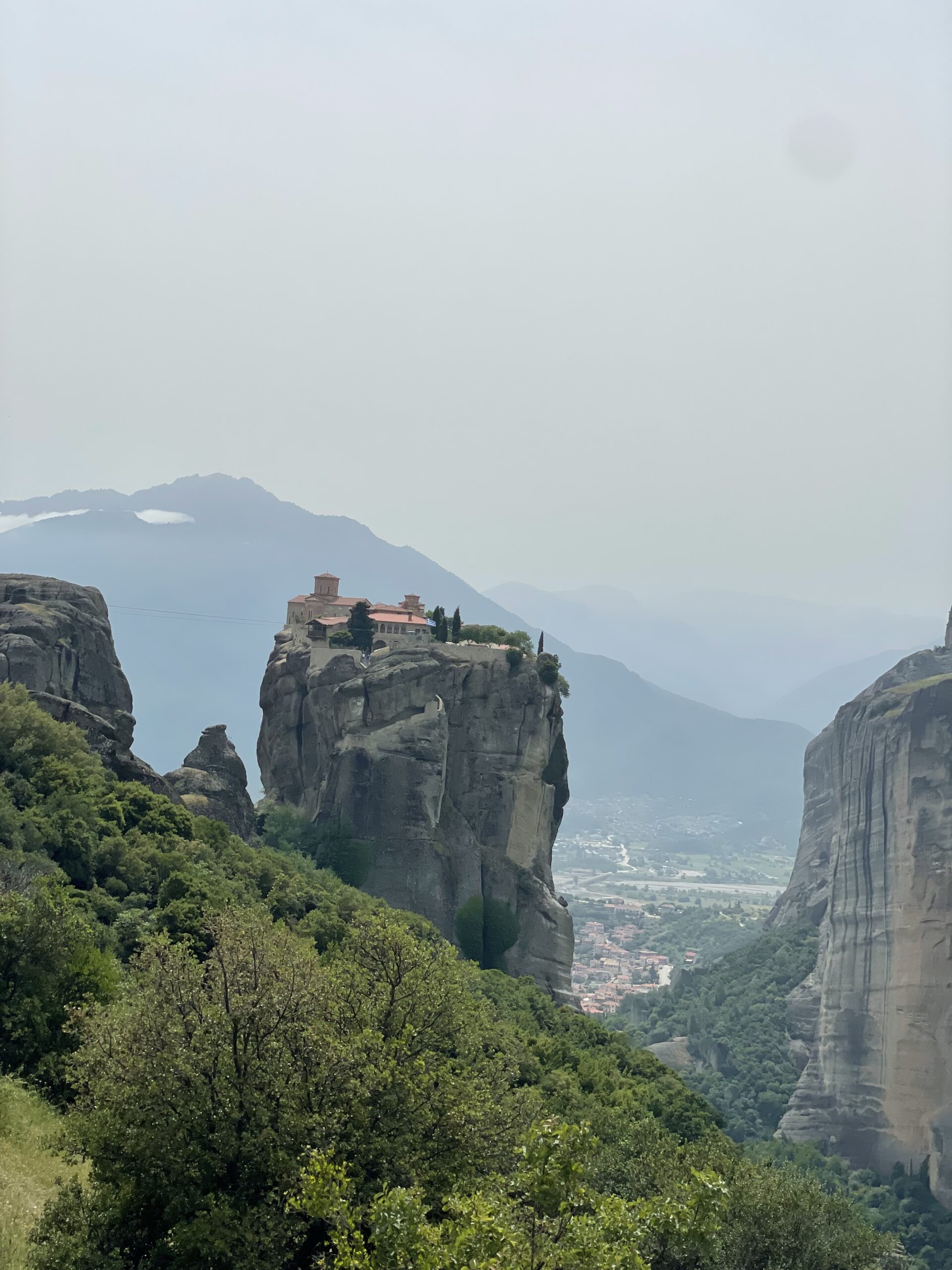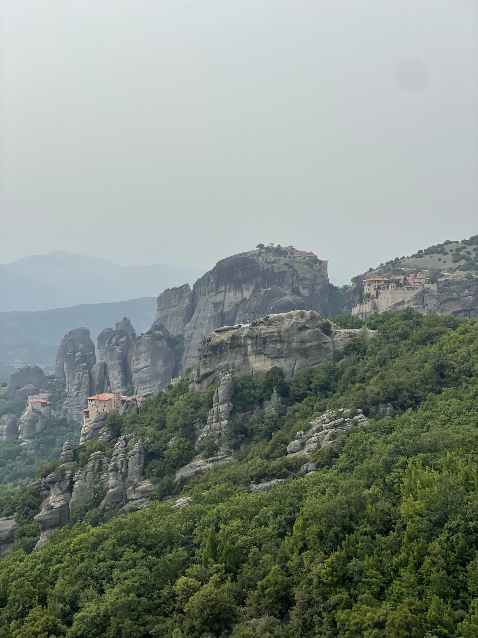 Am nächsten Tag haben wir uns ein Auto gemietet und sind damit zu den etwa 180 km entfernten Meteora-Klöstern gefahren. Die Meteora-Klöster sind eine Gruppe von orthodoxen Klöstern in Zentralgriechenland, die auf spektakulären Sandsteinfelsen errichtet wurden. Sie befinden sich in der Nähe der Stadt Kalambaka am Rande der Thessalischen Ebene. Diese Klöster gehören zu den wichtigsten und beeindruckendsten religiösen Stätten in Griechenland und sind UNESCO-Weltkulturerbe.
