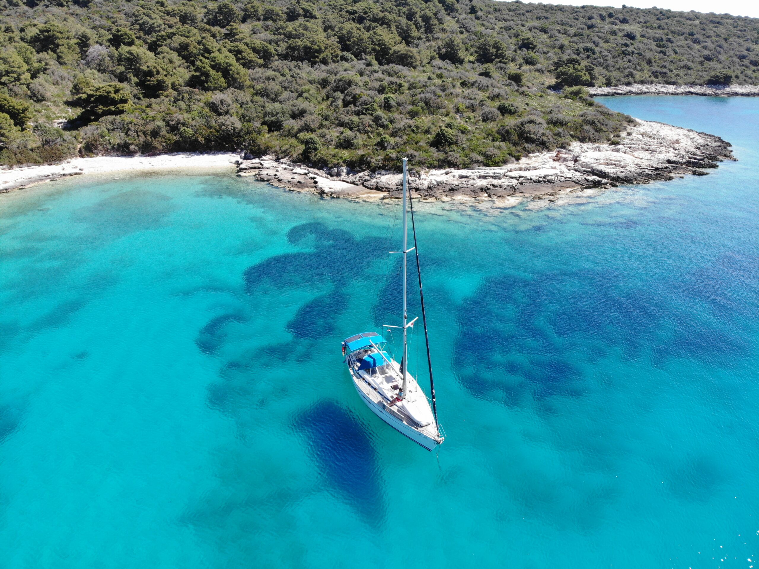 Bei der Suche und Auswahl eines geeigneten Ankerplatzes verwenden wir zum einen gerne den Revierführer „888 Häfen und Buchten“ und zum anderen die App „Navily“. Der angesprochene Revierführer umfasst dabei die Länder Slowenien, Kroatien und Montenegro wohingegen die App das gesamte Mittelmeer und darüber hinaus noch andere Reviere abdeckt. Ein sicherer Ankerplatz hängt auch immer unmittelbar vom Wetter und vor allem vom prognostizierten Wind ab. In der App „Navily“ findet hier bereits eine Bewertung in Abhängigkeit zum vorhergesagten Wind statt und man kann relativ einfach erkennen, ob der Ankerplatz für die kommende Nacht geeignet ist oder nicht. Sehr zu empfehlen! 😊