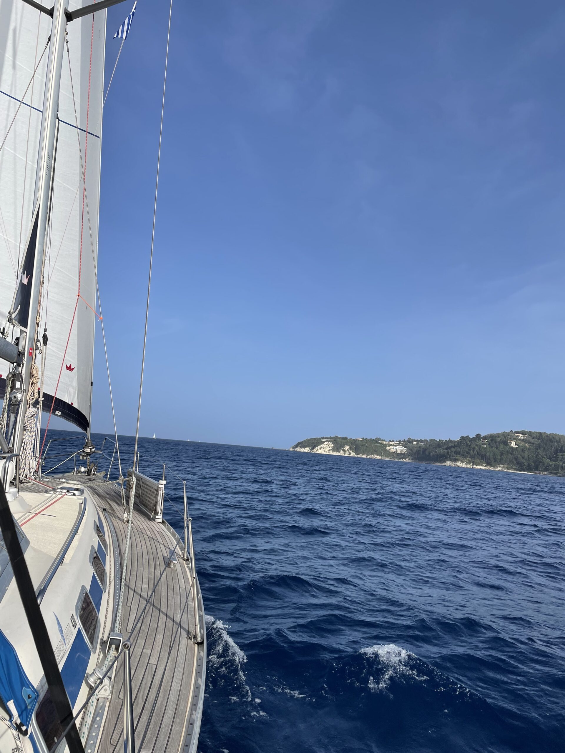 Nach einer knappen Stunde setzte der Wind ein und wir konnten wieder segeln. Unser angesteuertes Ziel war heute Paxos. Paxos (griechisch: Παξός) ist eine kleine Insel im Ionischen Meer, etwa 12 Kilometer südwestlich von Korfu gelegen. Sie ist die kleinste der sieben Hauptinseln der Ionischen Inseln und bekannt für ihre malerischen Dörfer, kristallklaren Gewässer und idyllischen Strände. Paxos bietet eine perfekte Mischung aus natürlicher Schönheit, kulturellem Charme und entspannter Atmosphäre, was sie zu einem beliebten Reiseziel für Ruhesuchende und Naturfreunde macht.