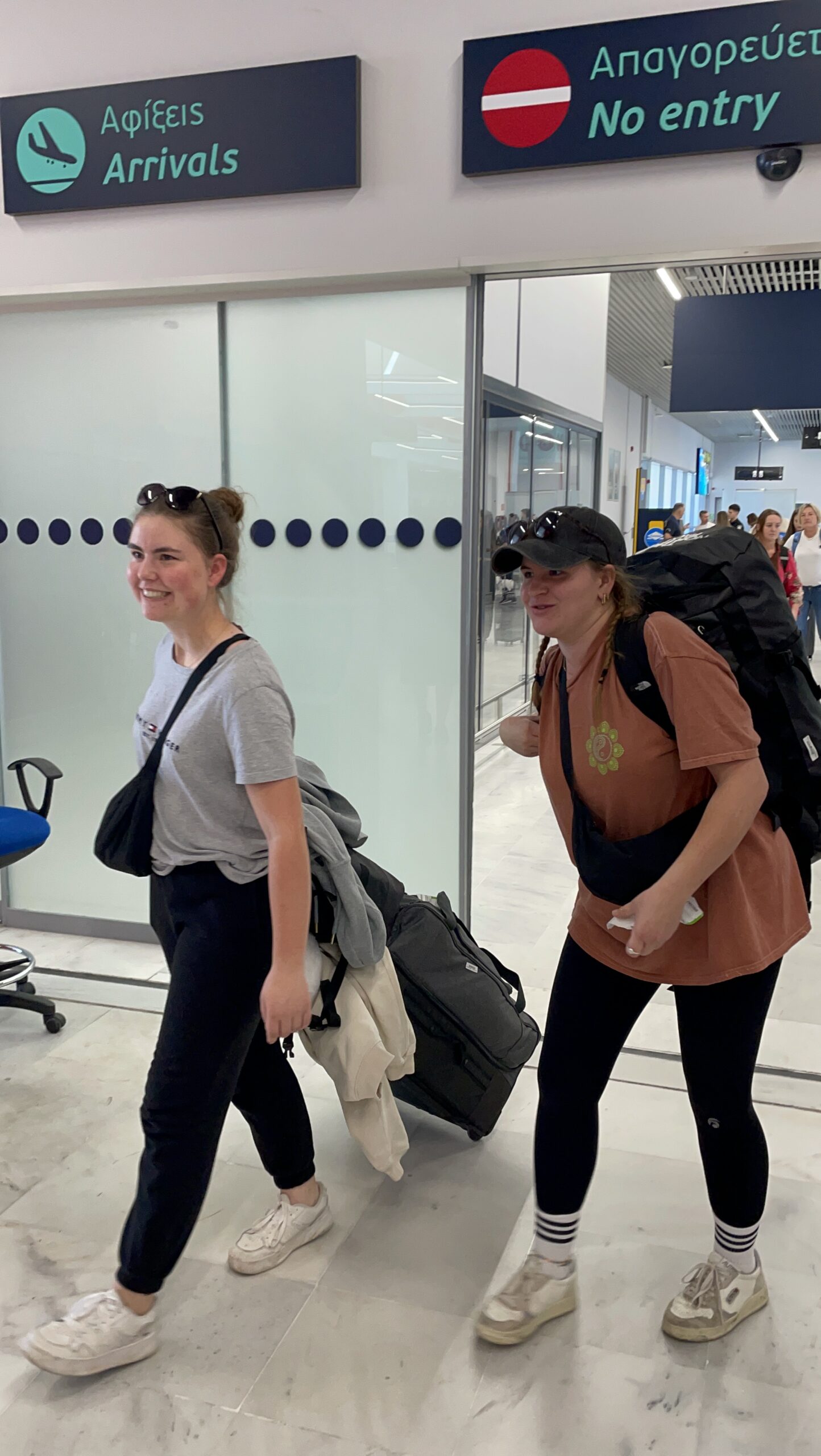 Am nächsten Morgen haben wir ausnahmsweise mal einen Wecker gestellt. Ursprünglich sollten Maike und Emma bereits um 09:00 in Preveza ankommen. Da der Flug aber eineinhalb Stunden Verspätung hatte, konnten wir den Tag wieder entspannt starten. Am Flughafen angekommen haben wir die Landung außen neben der Landebahn beobachtet und sind anschließend in die Ankunftshalle gegangen. Dort staunten wir nicht schlecht, als wir einige bekannte Gesichter aus Burgfarrnbach entdeckt haben. Und auch Maike und Emma haben im Flugzeug eine ehemalige Lehrerin getroffen. Des Zufalls Erklärung war eine griechische Hochzeit der Tochter der Schneiderin aus Burgfarrnbach – oder so ähnlich. 😂