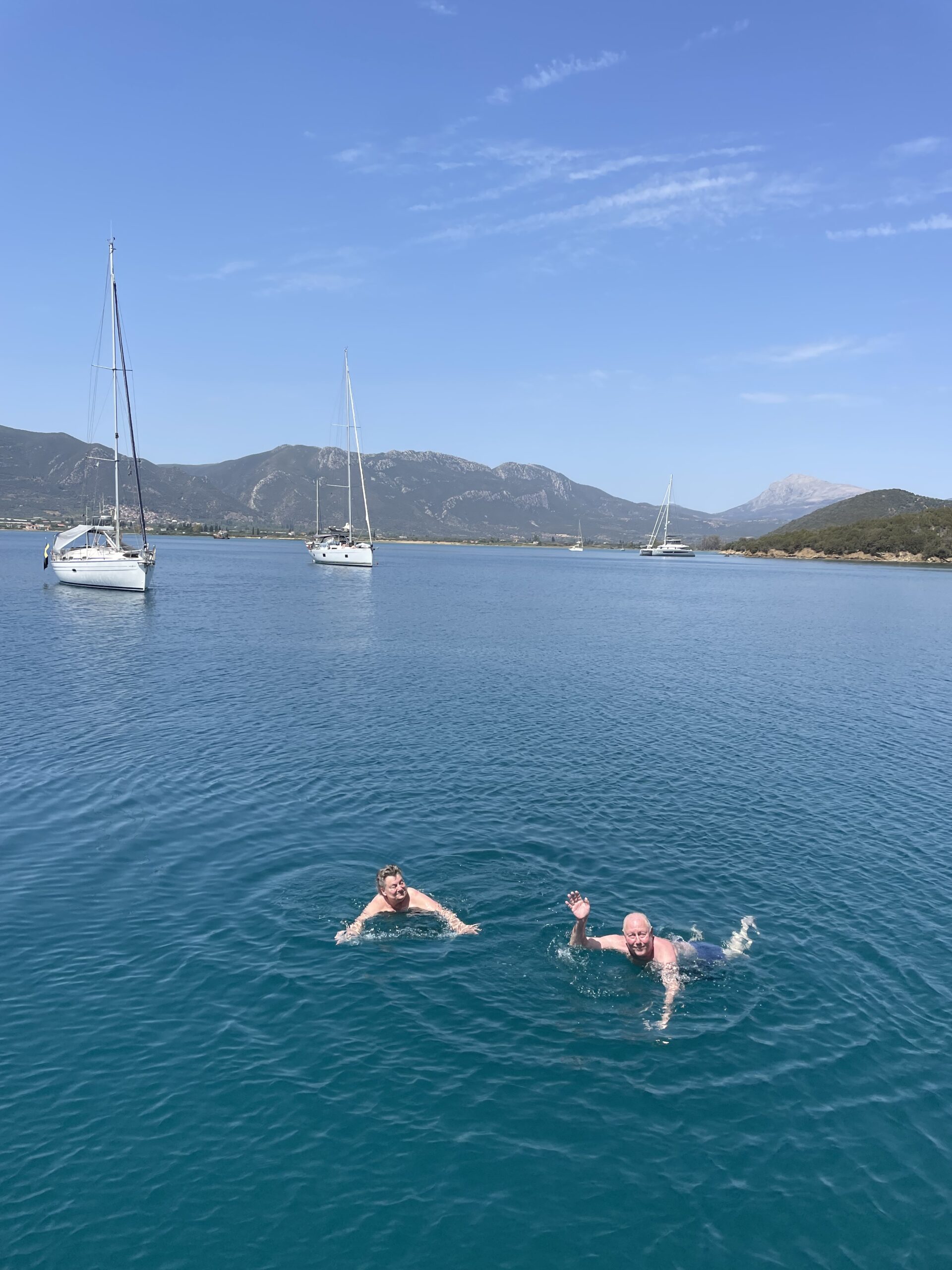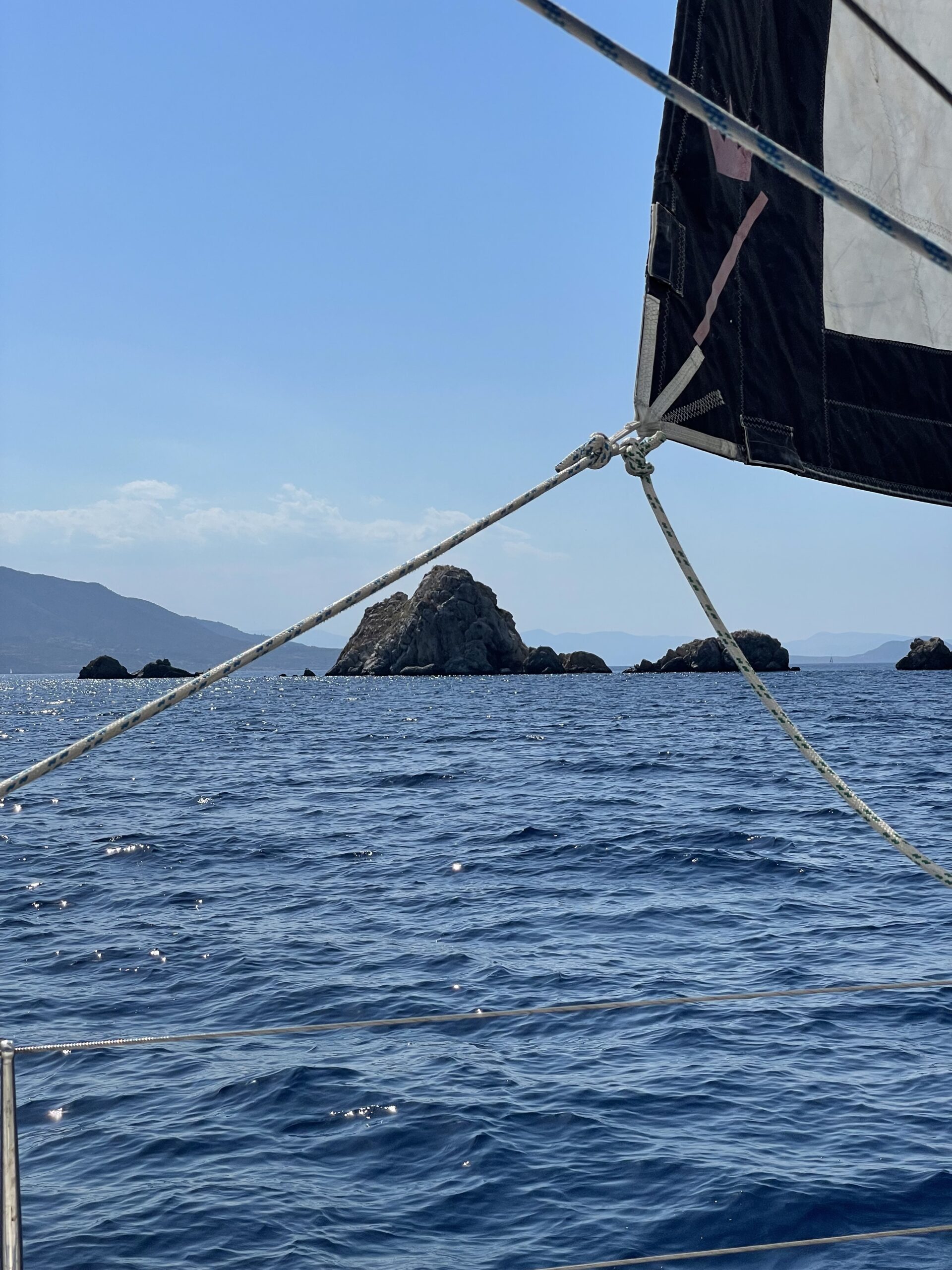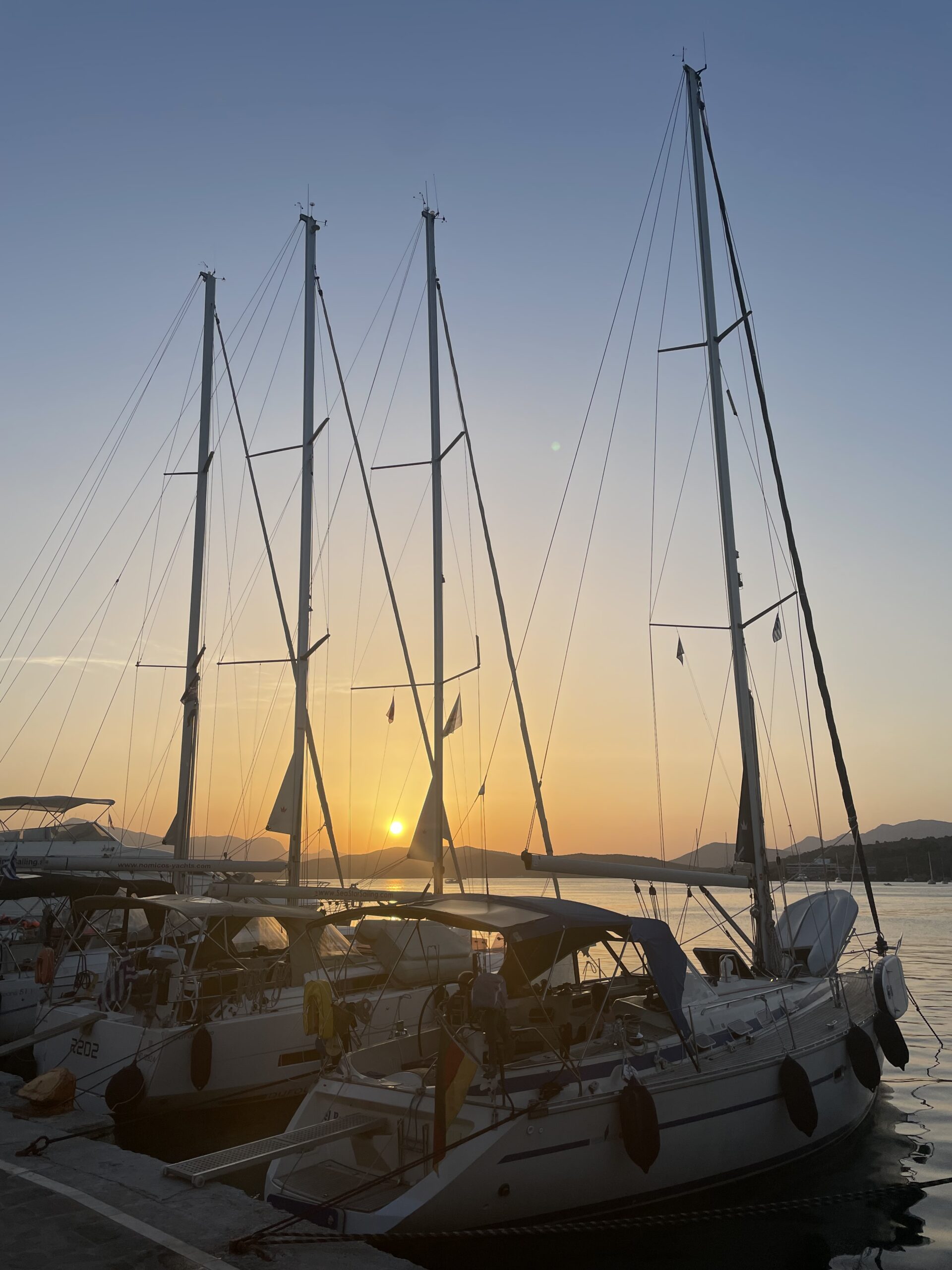 Am Mittwoch Abend brachte der Segelmacher unser Großsegel wieder zurück und wir haben es wieder hochgezogen und die teilweise erneuerten Segellatten wieder eingeschoben und fixiert. Nach einer kurzen Nacht holte ich dann am Donnerstagmorgen um 5:30 (!) meine Eltern vom Flughafen in Athen ab, die uns für zwei Wochen begleiteten. 😊