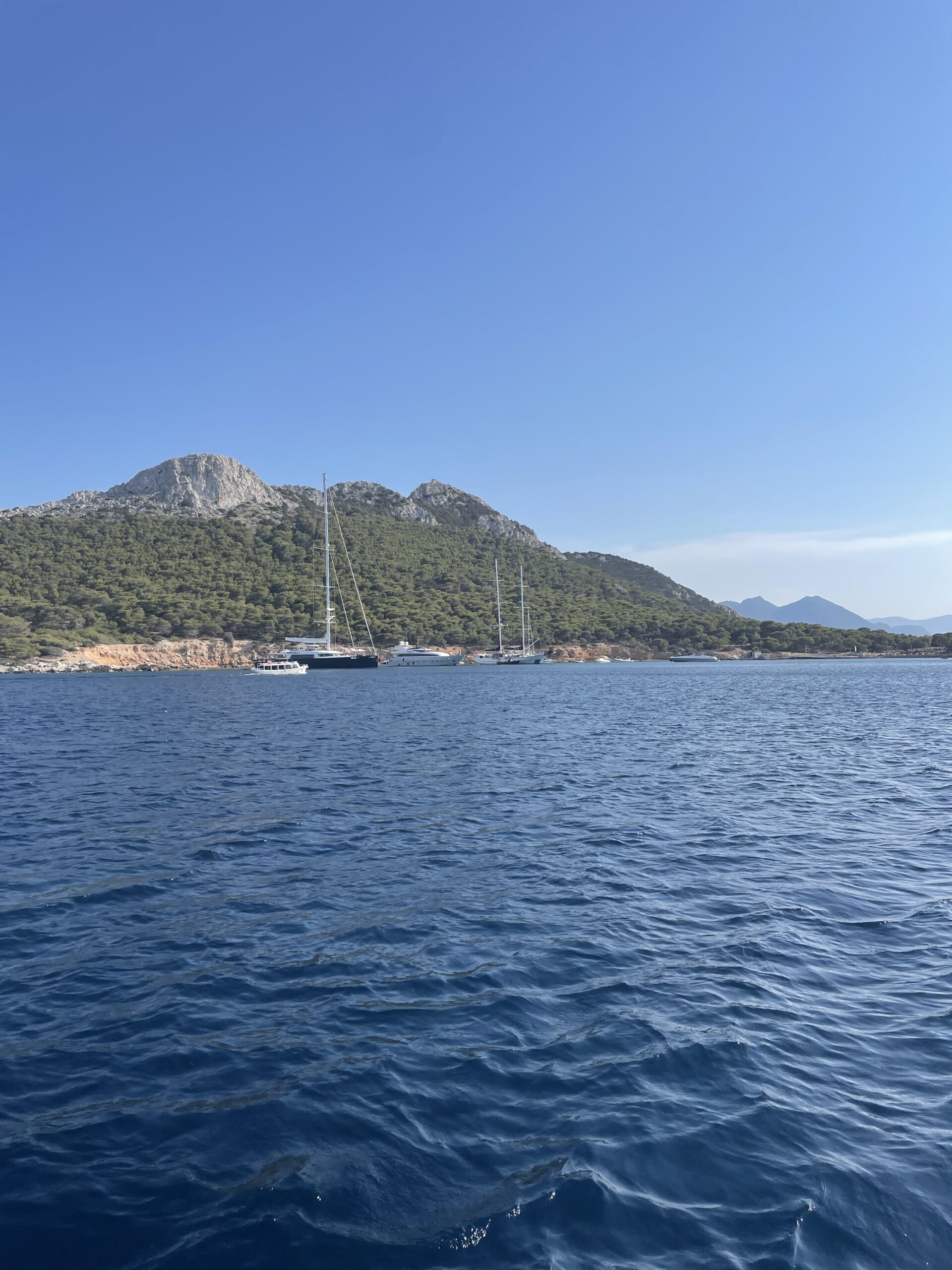 Nachdem wir Poros verlassen haben, war unser nächstes Ziel die Insel Moni. Hier gibt es Pfauen, freilaufende Hirsche und Wildziegen. Da es hier bei Ankunft schon sehr voll war und wir keinen geeigneten Ankerplatz gefunden haben, fuhren wir noch ein kurzes Stück auf die gegenüberliegende Insel Aigina und warfen hier unseren Anker.