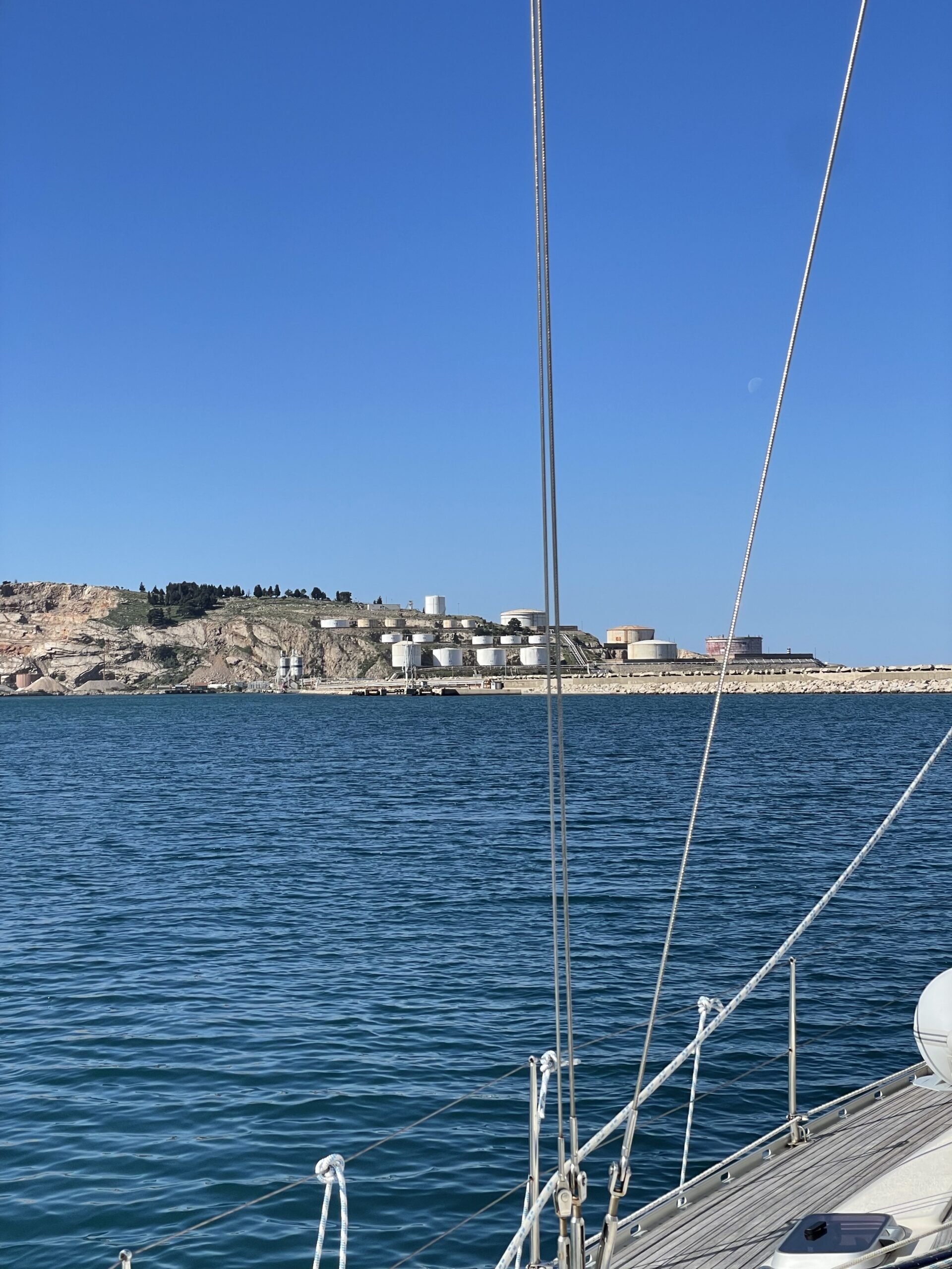 Am nächsten Morgen mussten wir früh los, da Kerstin und Silke am Abend wieder von Tirana nach Hause fliegen mussten. Um den nächsten Hafen in Dürres ansteuern zu dürfen, benötigten wir noch eine Port-Clearance vom Hafenkapitän. Diese brachte uns wie vereinbart Mr. Frock um 7:00 Uhr morgens ans Boot. Toller Service für 50,- Euro zzgl. 10,- Euro Hafengebühr. Dann fuhren wir aus dem Hafen und rollten die Segel aus. Bis Dürres waren es gut 40 Seemeilen. In Albanien gibt es kaum eine Infrastruktur für Segler und die Entfernungen zwischen den (meist) Industriehäfen sind sehr groß.