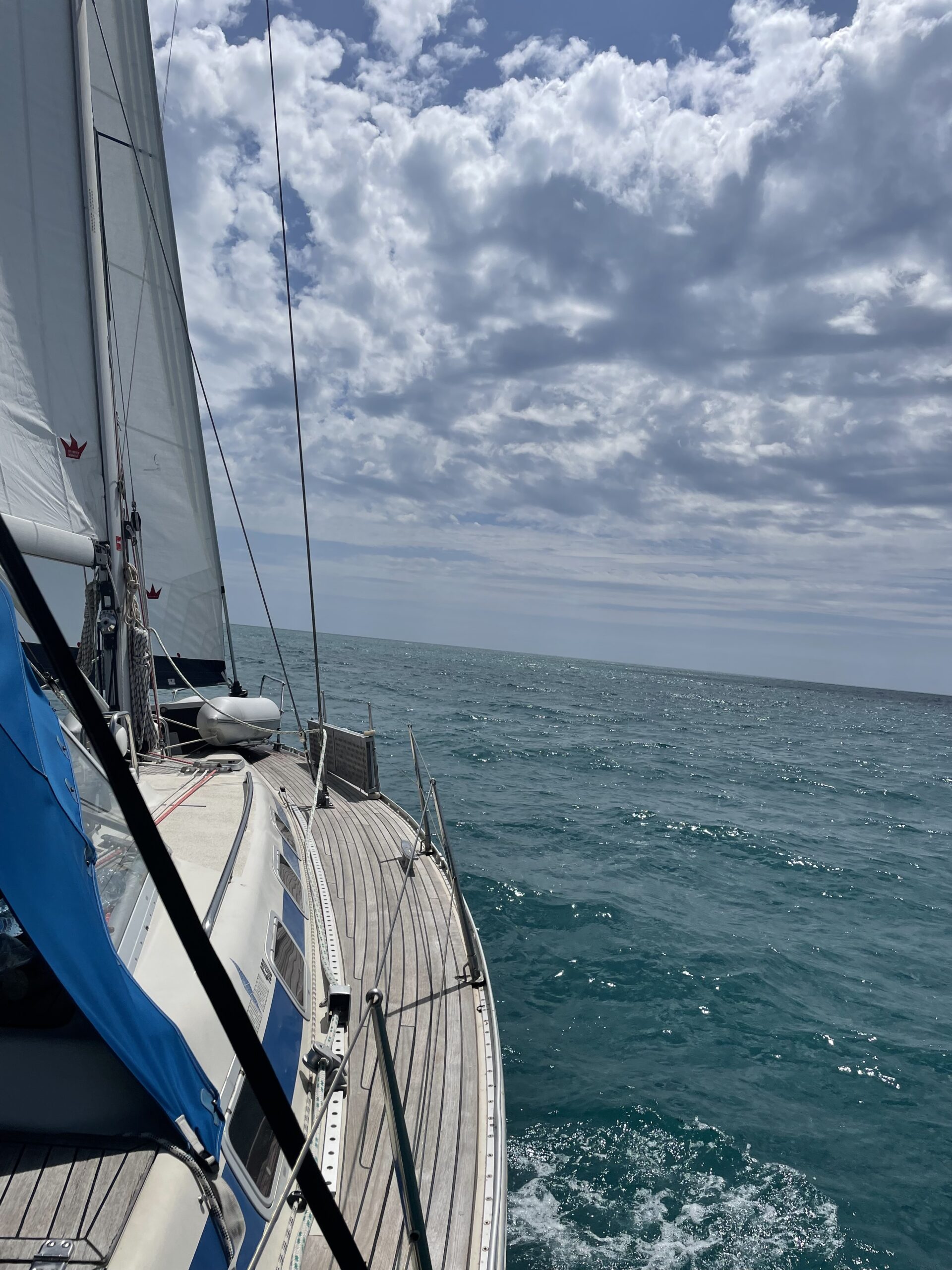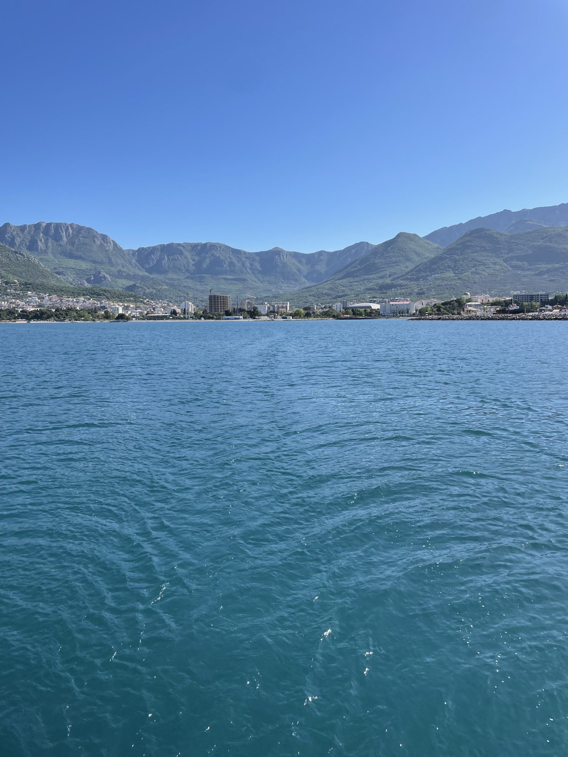 Nachdem die Formalitäten erledigt waren, fuhren wir aus dem Hafen von Bar heraus und rollten die Segel aus. Vorbei an einem riesigen Öllager und dem mit 12 Kilometern längsten Sandstrand Montenegros bei Ulcinj segelten wir mal mit mehr und mal mit weniger Wind über die Seegrenze nach Albanien. Der Fluss Bojana, der aus dem Skadarsee (auch bekannt als Shkodërsee) fließt, bildet einen natürlichen Teil der Grenze zwischen den beiden Ländern und mündet in die Adria.