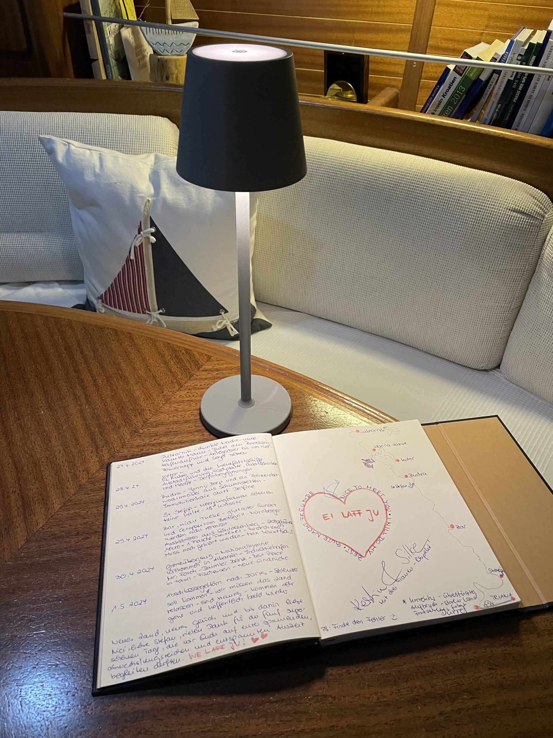 Nach dem Anlegen wurde el Rubio wieder aufgeräumt und vorbereitet für unsere nächsten Freunde an Bord. Sandra und Gerhard reisen in der Nacht von Nürnberg nach Tirana und kommen um kurz vor 1:00 Uhr morgens an. Dazu mehr im nächsten Blog. 😊