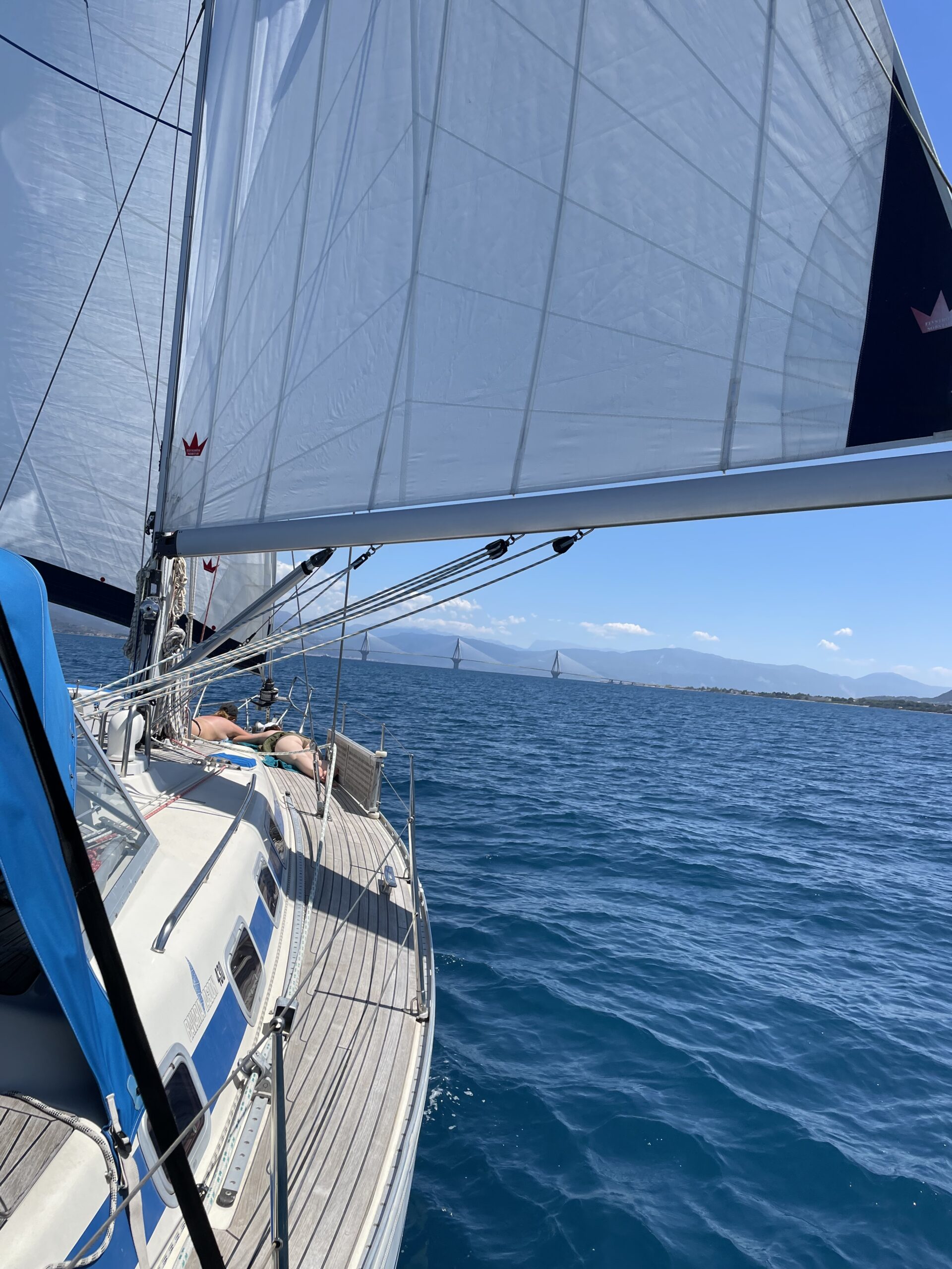 Nachdem wir Patras besichtigt haben, machten wir am nächsten Morgen die Leinen los, um in den Golf von Korinth zu segeln. Dabei war unser erster Wegpunkt die Durchfahrt unter der Rio-Andirrio-Brücke.