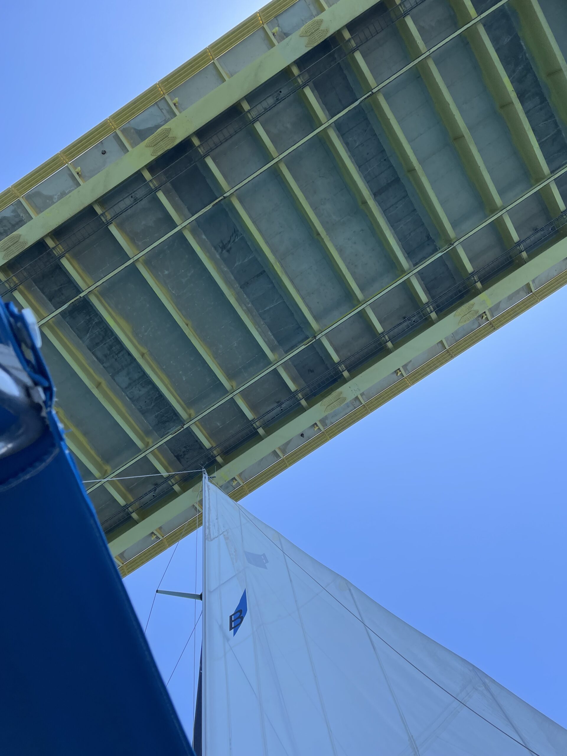Für die Durchfahrt mussten wir uns über Funk bei der Brückenkontrolle melden und bekamen dann die Freigabe für die Passage zwischen Pylon 1 und 2. Das sind die beiden südlichen Pylone von insgesamt vier Pylonen. Die Brücke hat uns sehr beeindruckt! 🤩