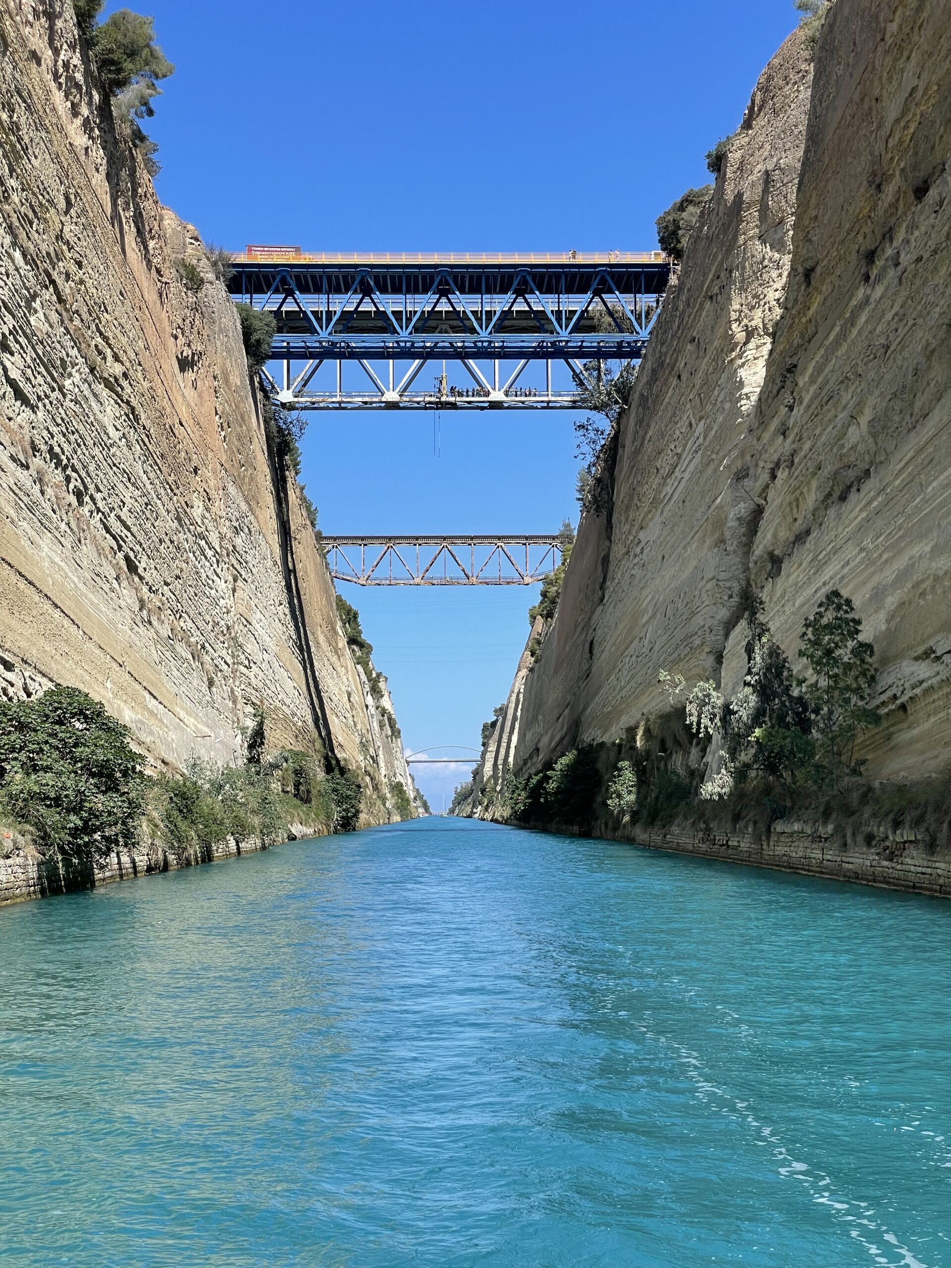 Der Kanal ist nicht nur ein technisches Meisterwerk, sondern auch eine historische Stätte. Schon im antiken Griechenland gab es Pläne, einen Kanal durch die schmale Landenge von Korinth zu bauen, doch erst im 19. Jahrhundert wurde das Vorhaben mit moderner Technik realisiert. Der Kanal wird von steilen Felswänden gesäumt, die bis zu 79 Meter hoch sind und den engen Durchgang zu einem eindrucksvollen Anblick machen.