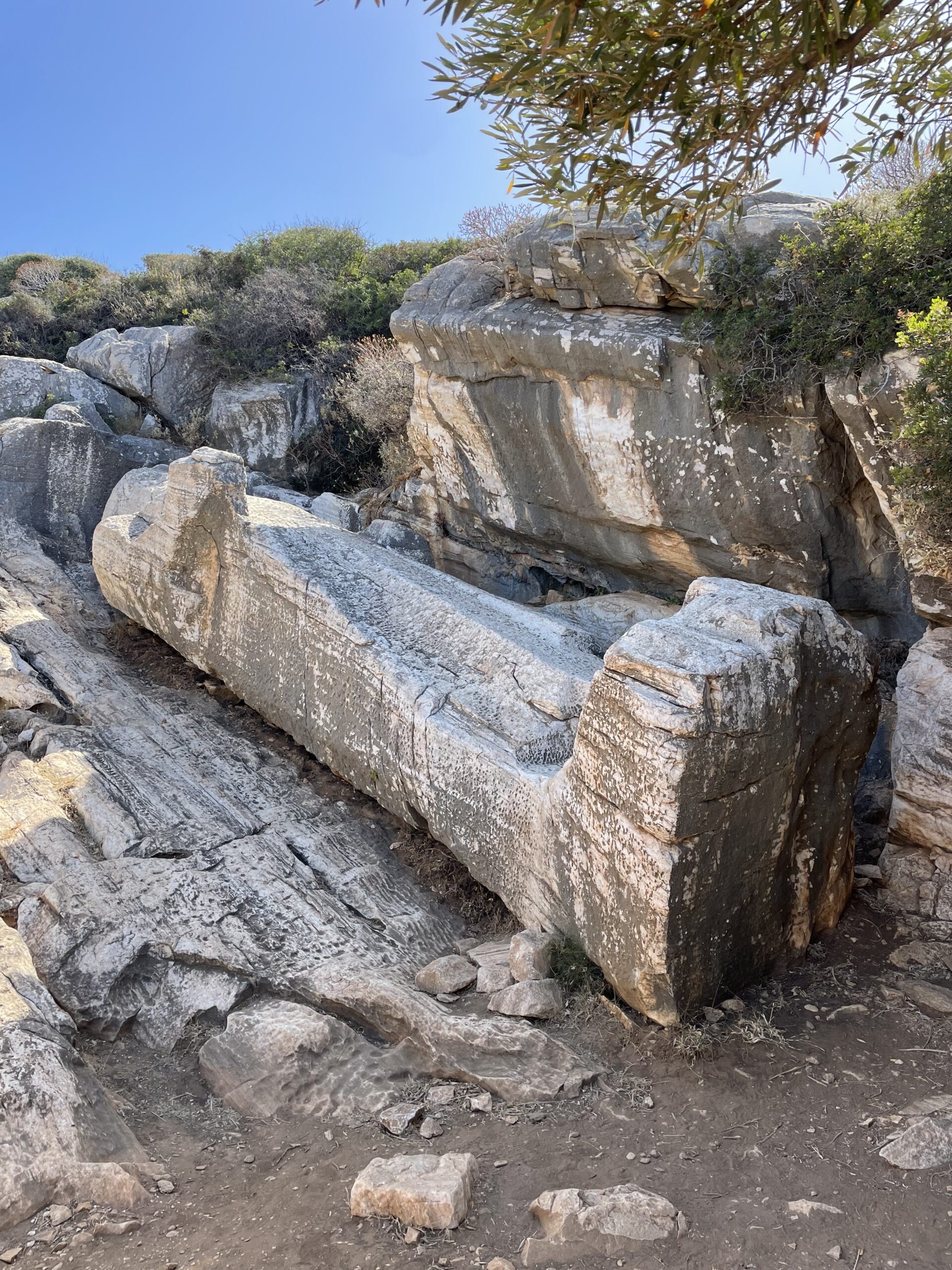 Am nächsten Morgen hatten wir wieder untypischen Wind aus Südost mit entsprechend unangenehmer Dünung. Wir haben dennoch in Finikas auf Syros abgelegt und sind zu Beginn bis an die Südwestspitze von Syros motort. Nach Passieren des Kaps rollten wir die Segel aus und segelten flott auf Südwest-Kurs Richtung Paros. Es war etwas bewölkt und der Wind relativ böig.