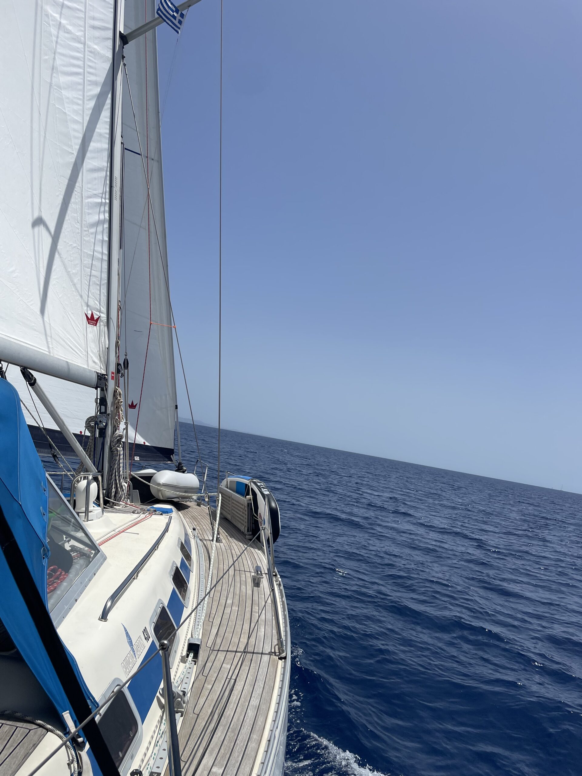 Nach einem schönen Segeltag ließen wir den Anker in einer Bucht im Südwesten der Insel vor der Stadt Finikas fallen und genossen das herrliche, türkisfarbene und klare Wasser zum Baden. Am nächsten Morgen gingen wir Anker auf und machten in der Stadtmarina von Finikas fest.